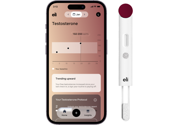 Track free testosterone, which shapes energy, strength, mood, libido, and long-term health. Results in 20 minutes.