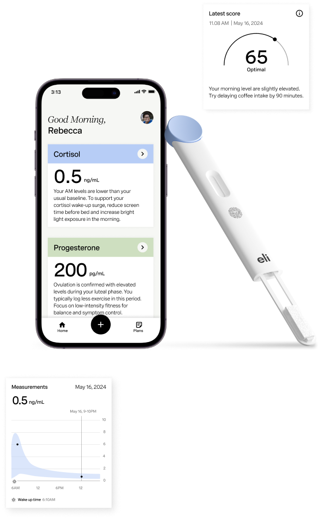 With world-leading experts, five years of R&D, and over a dozen patent-pending inventions, Eli made continuous hormone monitoring possible. Now, everyone can understand and manage their hormonal health anytime, anywhere. Eli is here to help you feel your best today and improve your lifelong health.
