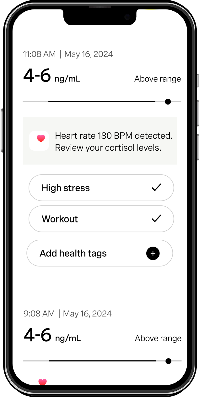 Check your cortisol level in the app and take actions based on your personalized insights